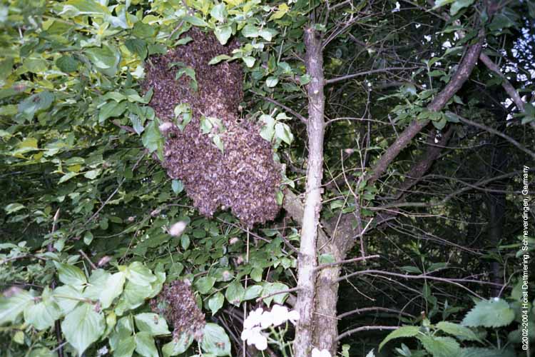 Zum besseren Einfangen des Bienenschwarms hat der Imker einige Zweige entfernt