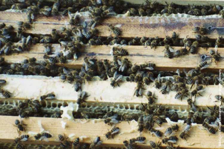 Nach dem Umarbeiten von Nektar in Honig sind die meisten Zellen mit Wachs verschlossen
