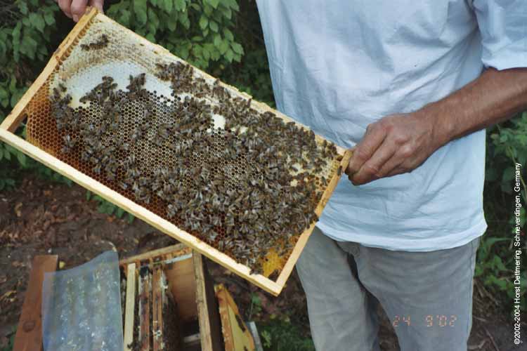 Futterwabe mit Honig- und Pollenvorräten