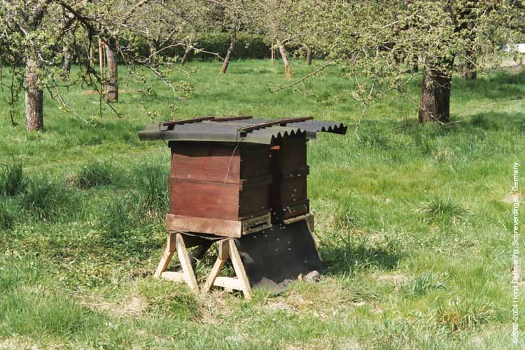 Die Bienen fliegen zu angrenzenden Spitzahornbäumen