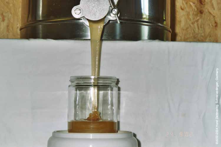 Hier wird Heidehonig nach dem Schleudern und Rühren abgefüllt